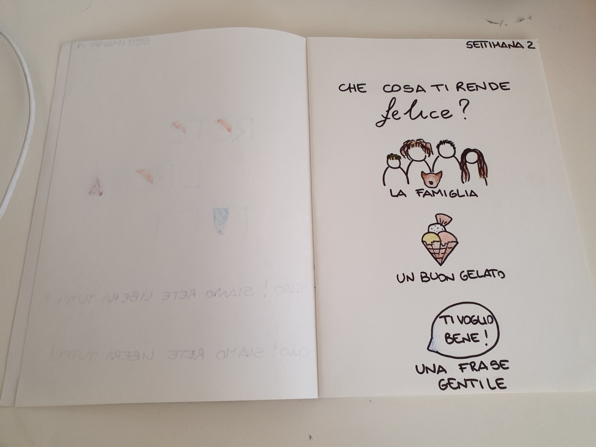 Vi ricordiamo che potete rispondere in qualsiasi modo: scrivendo un breve testo, qualche parola, facendo un disegno, incollando alcune cose sulla pagina o facendo qualsiasi cosa vi piaccia!